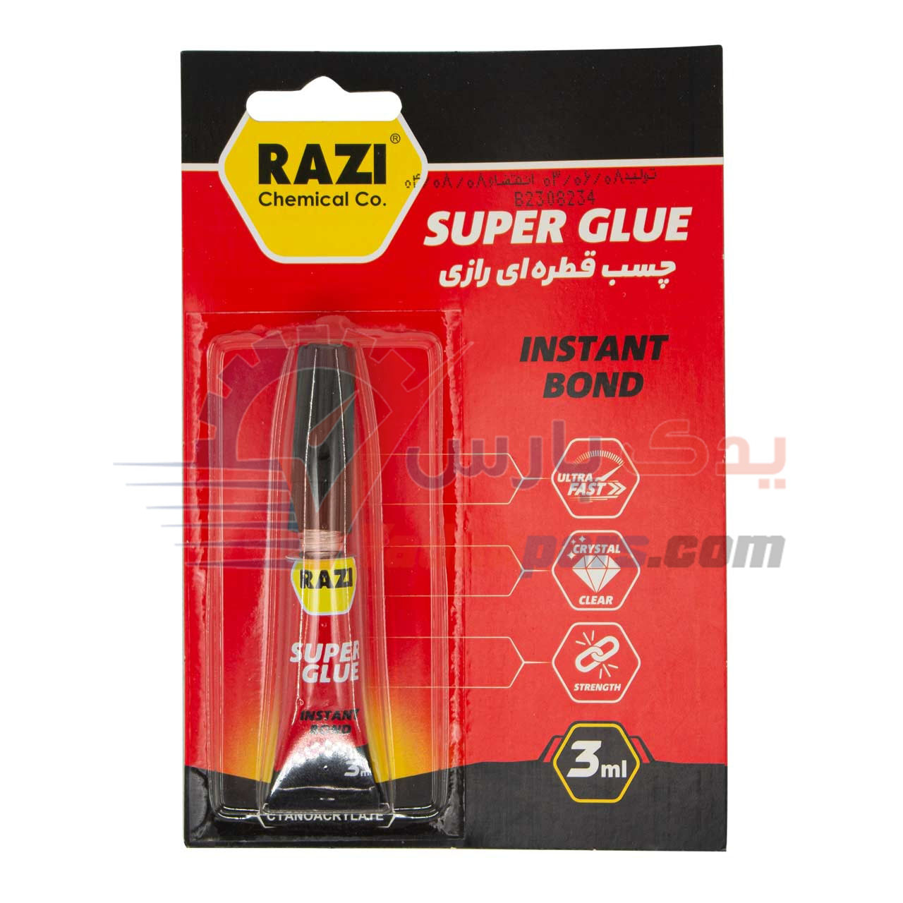 چسب قطرهای رازی از شاخه سیانو اکریلایتها با چسبدگی بسیار قوی و سریع است. این چسب کاملا شفاف و بسیار مناسب کارهای ظریف و دقیق است و پس از خشک کردن اثری به جا نمیگذارد.